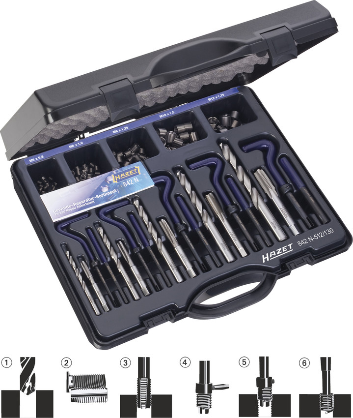 Набор для ремонта и восстановления резьбы Hazet 842N-512/130 купить в Воронеже и других городах России