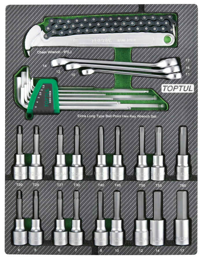 Набор торцевых насадок, шестигранники Г-образные и разрезные ключи, 31 пр. в мягком ложементе TOPTUL GEB3109 купить в Воронеже и других городах России